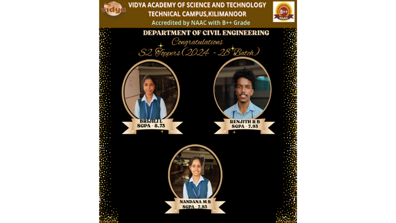 Vaishnav G Pillai, first-year Computer Science student (S1 CSE B) of Vidya Academy of Science and Technology, Technical Campus, Kilimanoor, brought laurels to the institution by achieving the Winner’s Title at the Kerala State Roll Ball Championship 2025...