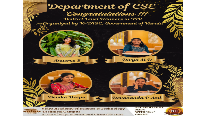 Students from the Department of Computer Science and Engineering at Vidya Academy of Science and Technology Technical Campus (VAST TC) have achieved a notable accomplishment in the Young Innovators Programme (YIP) 8.0.