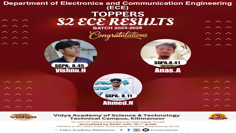 Toppers of KTU S2 University Examination - Department of Electronics and Communication Engineering.