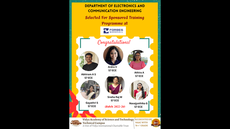 We are thrilled to announce that 6 of our Final year students (2022-26 Batch ECE) are selected for prestigious Sponsored Training Programme at Forbes Marshall